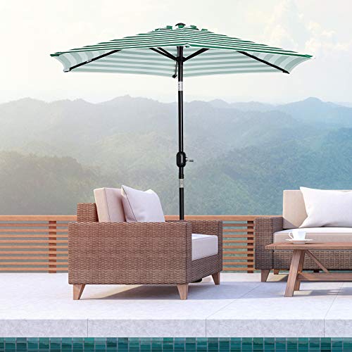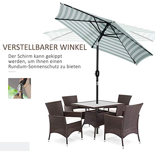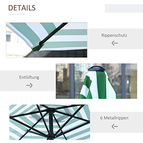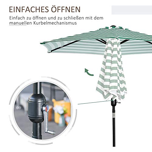 Outsunny Sonnenschirm Gartenschirm Terrassenschirm Gestell Stahl im Freien Grüner Streifen Ø230 x 216 cm