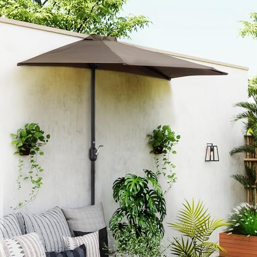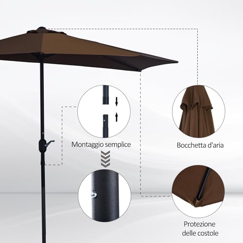 Outsunny Sonnenschirm halbrund, für den Garten, mit Kurbelöffnung, aus Polyester, 269 x 138 x 236 cm