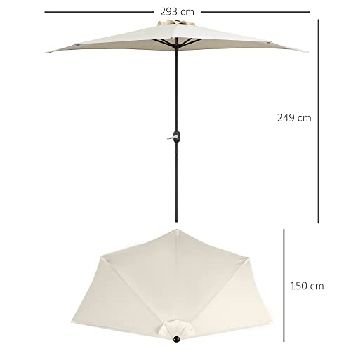 Outsunny Sonnenschirm Kurbelschirm Gartenschirm Schirm Marktschirm, Alu, halbrund, grau/cremeweiß