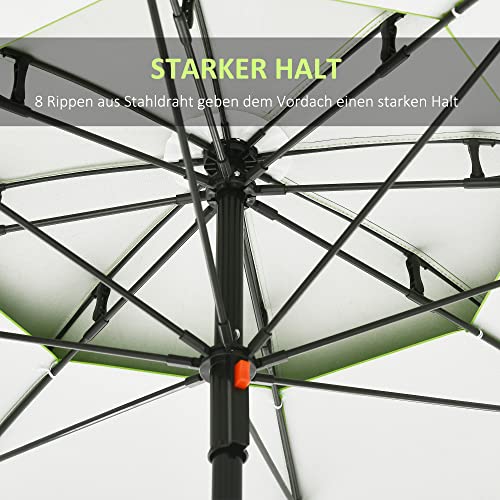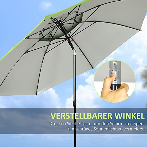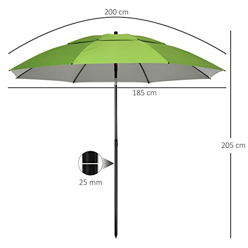 Outsunny Sonnenschirm, Ø185 cm Strandschirm mit UV-Schutz, Marktschirm mit Doppeldach, 8 Streben, Terrassenschirm mit Tasche für Garten, Balkon, Stahl, Grün