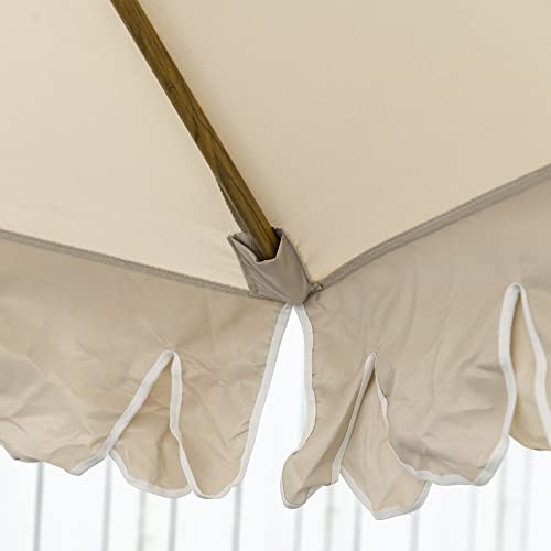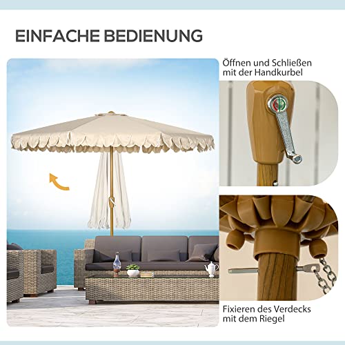 Outsunny Sonnenschirm, Ø264 cm Strandschirm mit Fransen, Terrassenschirm mit verstellbarer Neigung, 8 Streben, für Garten, Balkon, Khaki