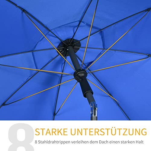 Sonnenbaden ist nicht Ihr Stil? Haben Sie es satt, sich im heißen Sand die Füße zu abbrennen? Verabschieden Sie sich in diesem Sommer von zu in Hülle und Fülle Sonne mit diesem Sonnenschirm für Strand von Outsunny. Dieser Strandschirm mit Rüschen bietet Ihnen en masse Schatten und Abschirmung vor der UV-Strahlung. Der Winkel des Sonnenschirms ist verstellbar, sodass Sie den Schattenbereich selbst abstecken können. Der Strandschirm ist für den Außenbereich passend und verfügt über einen Stahlrahmen und acht Stahldrahtrippen, die für eine hohe Langlebigkeit sorgen und der Meeresbrise standhalten.