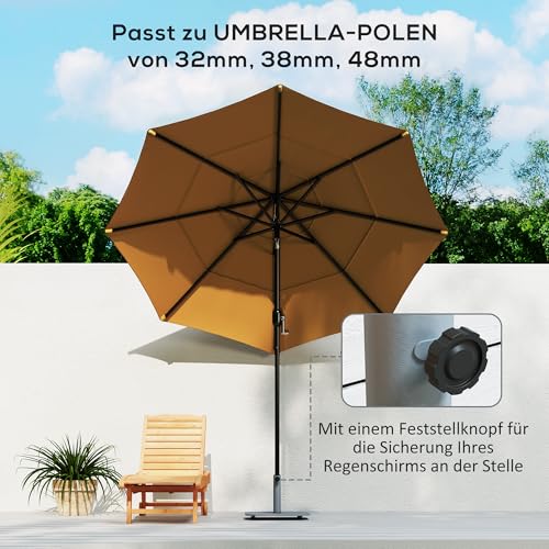 Universelle Kompatibilität: Dieser Schirmständer eignet sich anstelle die meisten Marktschirme mit einem Stangendurchmesser von 32, 38, 48 mm sowie anstelle Schirme bis zu 2,5 m Durchmesser. Ideal anstelle Potpourri Außenbereiche, garantiert sie eine sichere Bindung Ihres Sonnenschirms.