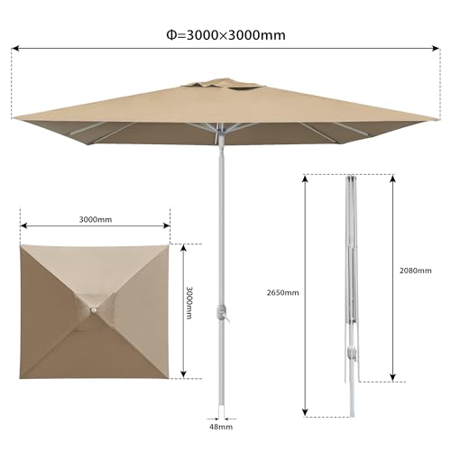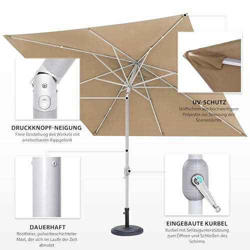 VIELSEITIGER KURBELSCHIRM – Der Sonnenschirm ist knickbar und ist auf Grund der Tatsache der idealen Größe vielseitig einsetzbar zB. Denn Balkon-Schirm Terrassenschirm Sonnenschirm Marktschirm Garten-Schirm oder Gastroschirm