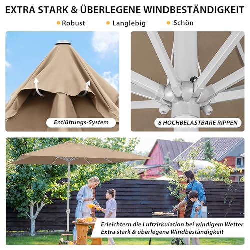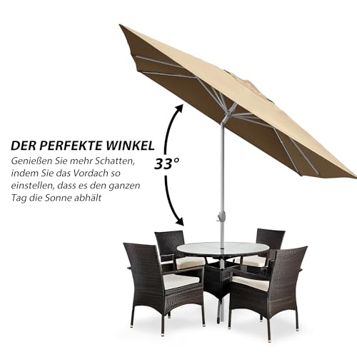 SICHERER SONNENSCHUTZ mit UV-Abschirmung 30+ alle 100% Polyester mit ca. 230g/m² – Auf 8 stabilen Streben befestigt I Der Terrassenschirm ist wasserabweisend und waschbar