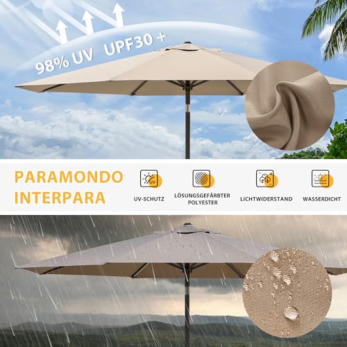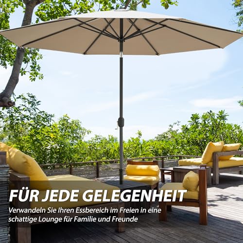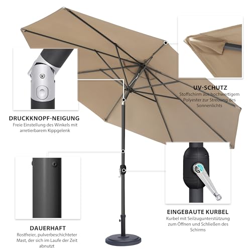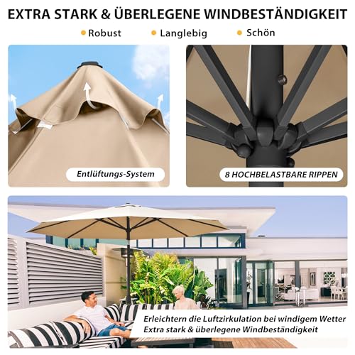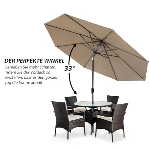 SICHERER SONNENSCHUTZ – mit UV-Abschirmung 30+ ganz 100% Polyester mit ca. 230g/m² – Auf 8 stabilen Streben befestigt. Der Terrassenschirm ist wasserabweisend und waschbar