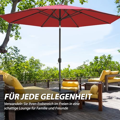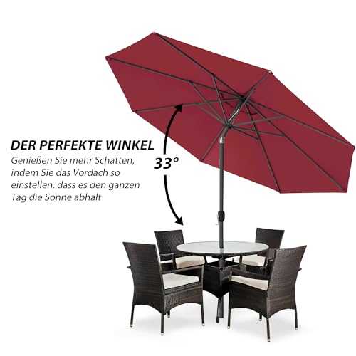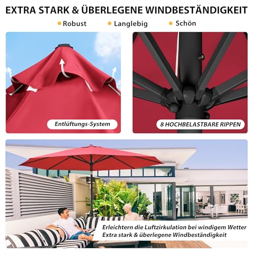 SICHERER SONNENSCHUTZ – mit UV-Abschirmung 30+ jeder 100% Polyester mit ca. 230g/m² – Auf 8 stabilen Streben befestigt. Der Terrassenschirm ist wasserabweisend und waschbar