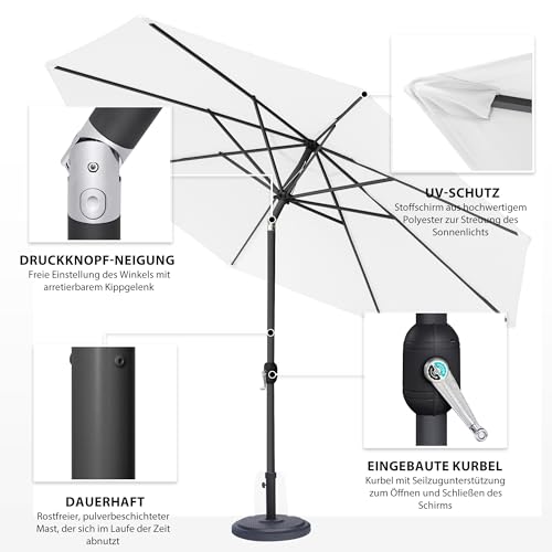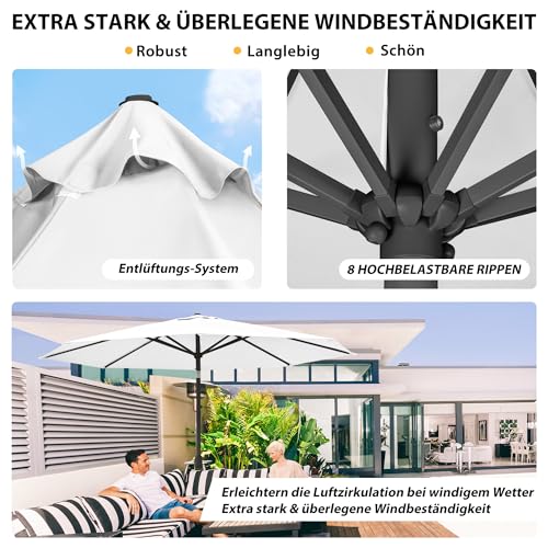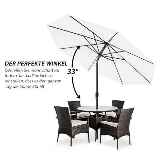 SICHERER SONNENSCHUTZ – mit UV-Abschirmung 30+ jedweder 100% Polyester mit ca. 230g/m² – Auf 8 stabilen Streben befestigt. Der Terrassenschirm ist wasserabweisend und waschbar
