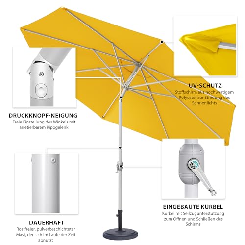 SICHERER SONNENSCHUTZ – mit UV-Abschirmung 30+ jedweder 100% Polyester mit ca. 230g/m² – Auf 8 stabilen Streben befestigt. Der Terrassenschirm ist wasserabweisend und waschbar