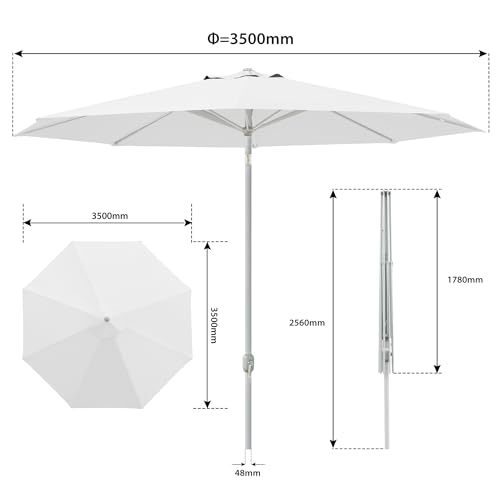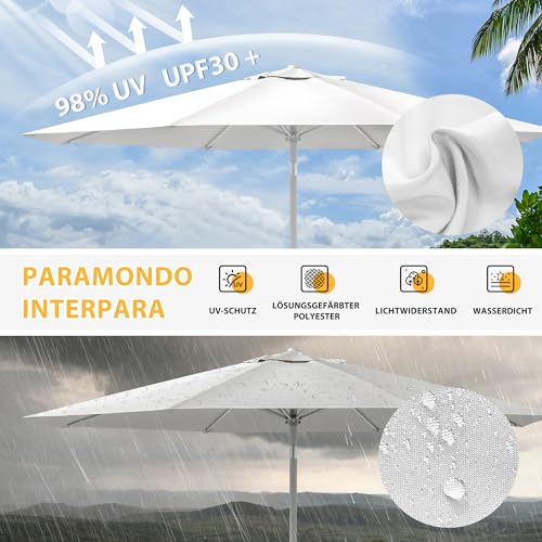paramondo interpara Sonnenschirm Rund, Ø 3,5 m, Gartenschirm Marktschirm Knickbar, für Terrasse und Balkon, mit Kurbel, Gestell Silber, Weiss