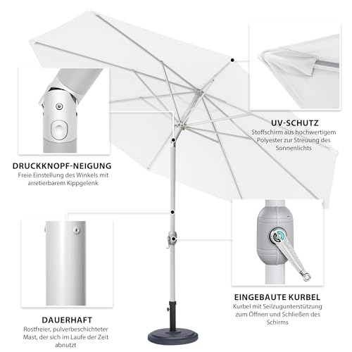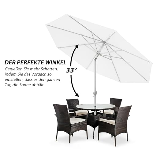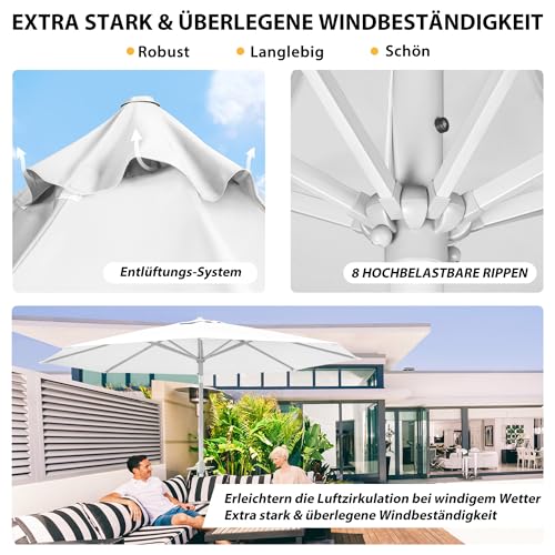 SICHERER SONNENSCHUTZ – mit UV-Abschirmung 30+ jeglicher 100% Polyester mit ca. 230g/m² – Auf 8 stabilen Streben befestigt. Der Terrassenschirm ist wasserabweisend und waschbar