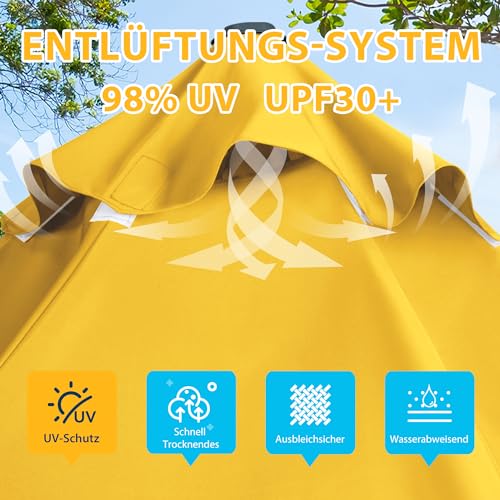 Mit einem UV-Abschirmung von 30+ sind Sie tief gelegen Ihrem runden Sonnenschirm bestens geschützt. Die Farben der Polyesterbespannung (230g/m²) behalten mit einer Lichtechtheit von 5-6 lange ihre Leuchtkraft