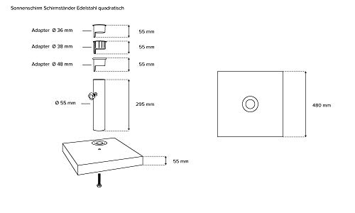 Sie in den Besitz kommen den paramondo Sonnenschirmständer ganz poliertem Edelstahl in den Varianten „rund“ oder „quadratisch“