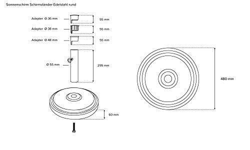 Sie aneignen den paramondo Sonnenschirmständer allesamt poliertem Edelstahl in den Varianten „rund“ oder „quadratisch“