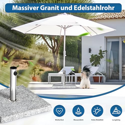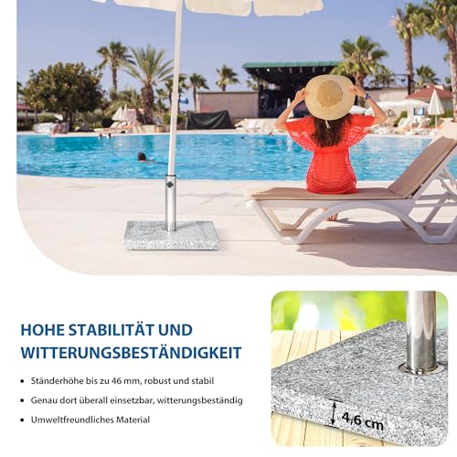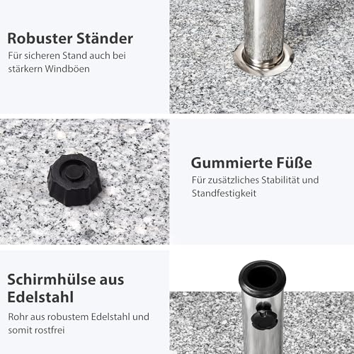 Der paramondo Schirmständer verfügt mit Hilfe von einen standfesten Standfuß sämtliche massivem Granit mithilfe integrierter Wasserrinne