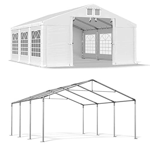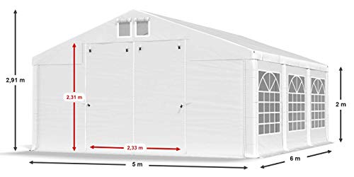 ATTRAKTIVES AUSSEHEN: Die PVC Seitenwandplane hat eine Dicke von 500 g/m² und ist mit großen Sprossenfenstern versehen. Ihre Standardhöhe beträgt 2m. Dank den Fenstern, die in jedem zwei Meter Segment platziert sind, sieht der Pavillon ästhetisch aus. Es eignet sich hervorragend als ein Verkaufszelt, Ausstellungspavillon oder Zeltgarage.