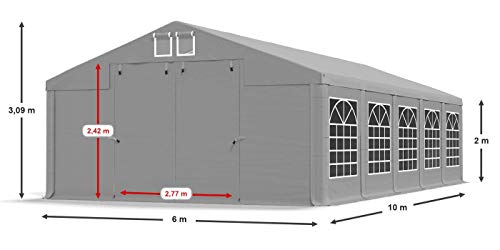 ATTRAKTIVES AUSSEHEN: Die PVC Seitenwandplane hat eine Dicke von 500 g/m² und ist mit großen Sprossenfenstern versehen. Ihre Standardhöhe beträgt 2m. Dank den Fenstern, die in jedem zwei Meter Segment platziert sind, sieht der Pavillon ästhetisch aus. Es eignet sich hervorragend als ein Verkaufszelt, Ausstellungspavillon oder Zeltgarage.