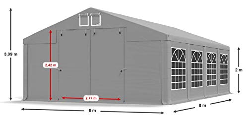 Partyzelt 6x8m wasserdicht grau Zelt 560g/m² PVC Plane Hochwertigeszelt Gartenzelt Summer SD – Faltpavillon, Gartenpavillon, Pavillon, Lagerzelt, Gartenhaus, Zeltgarage, Garagenzelt – Partyzelt