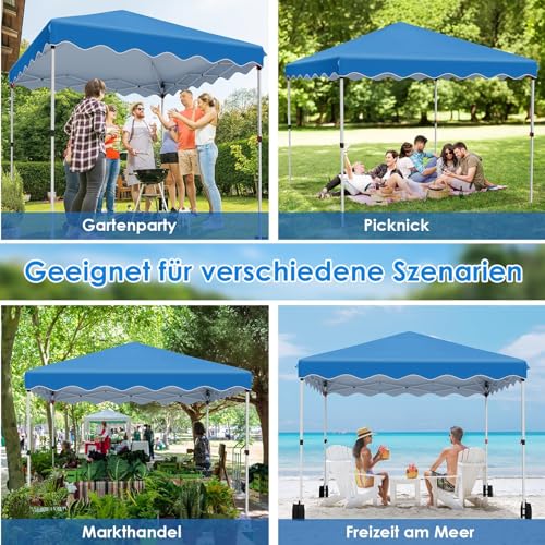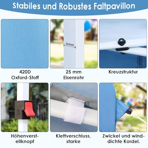 Pavillon 3×3 Faltpavillon, Wasserdicht Partyzelt 420D Oxford, UV-Schutz 50+ Gartenpavillon, Gartenzelt inkl. Sandsack Geschliffene Nägel Aufbewahrungstasche,für Garten Party Hochzeit (Blau)