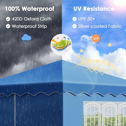 ⛱️【402D Hochwertiges Material】Die Überdachungsplane besteht aus hochdichtem 420D Oxford Gewebe,Mit einem versilberten PU,Futter ist es wasserabweisend und UV 50+. alle Nähte sind versiegelt und es hält einem 100% wasserdichten,Umschreiben Sie den Komfort in Ihrem Garten oder auf Ihrer Terrasse.2 von 4 Seitenteilen sind mit transparenten Fenstern ausgestattet, dadurch erhält man schöne Lichtstrahlen ins Zelt.Sogar im kalten Winter, wenn alle Seitenwände bedeckt wären,genießt Sie ein gutes Lichtverhältnisse.Die Seitenwände sind abnehmbar.