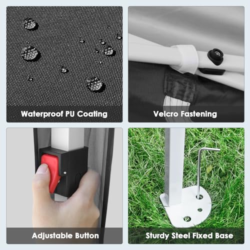 ⛱️【420D Hochwertiges Material】Die Überdachungsplane besteht aufgebraucht hochdichtem 420D Gewebe,Der verbesserte Stoff ist mit einer PU-Beschichtung behandelt und Innenseite ist versilbert mit UV-Abschirmung 50+, Die versiegelte Nahttechnologie ist effektiv wasserdicht und bietet Ihnen kühlen Abschirmung bei Sonne oder Regen.Hinweis:extremen Wetterbedingungen (wie Starker Wind,starker Regen,Schneesturm ) ,wird empfohlen, Partyzelt zusammenzufalten und Innenbereich aufzubewahren,Verhindern starken Schneefall oder starke Winde, den Rahmen wegblasen oder zerdrücken.