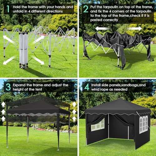 ⛱️【420D Hochwertiges Material】Die Überdachungsplane besteht aufgebraucht hochdichtem 420D Oxford Gewebe,Mit einem versilberten PU,Futter ist es wasserabweisend und UV 50+. jeglicher Nähte sind versiegelt und es hält einem 100% wasserdichten,Verarbeiten Sie den Komfort in Ihrem Garten oder auf Ihrer Terrasse.2 von 4 Seitenteilen sind mit transparenten Fenstern ausgestattet, dadurch erhält man schöne Lichtstrahlen ins Zelt.Sogar im kalten Winter, wenn jeglicher Seitenwände bedeckt wären,genießt Sie ein gutes Lichtverhältnisse.Die Seitenwände sind abnehmbar.