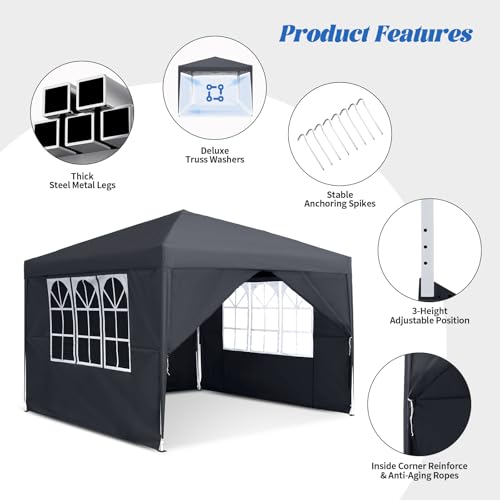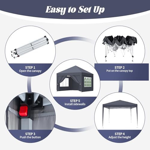 【3 Einstellbare Höhen】Stellen Sie das Gartenpavillon klappbar auf die gewünschte Höhe ein, da es an den Beinen ein Knopfsystem zur Höhenverstellung gibt. Egal ob als Marktstand, Gartenparty oder Festival – die flexible Höhenverstellung erfüllt die Anforderungen unterschiedlichster Gelegenheiten.