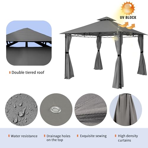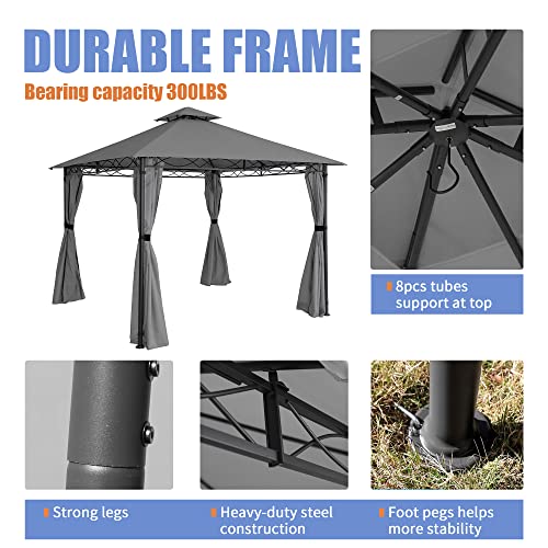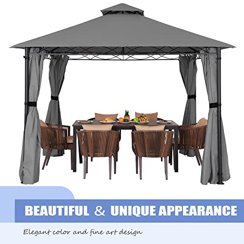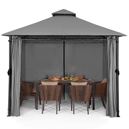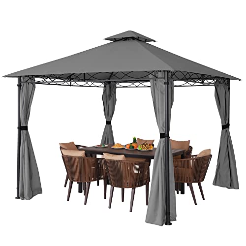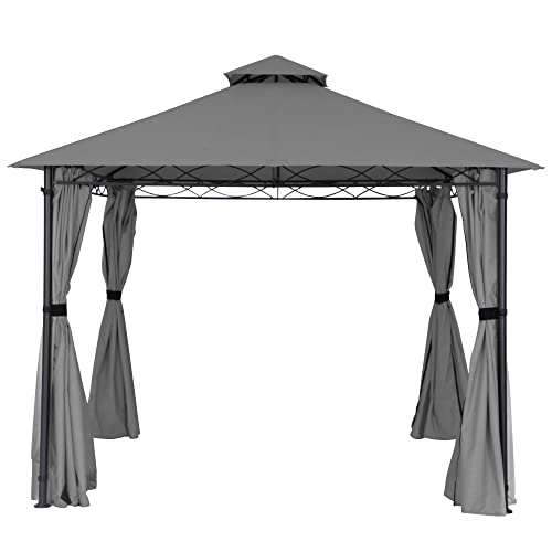 Pavillon 3X3M Wasserdicht Stabil Winterfest Robuster Gartenpavillon mit Vorhänge Atmungsaktiver Pavillion für Camping Garten und Terrasse (Dunkelgrau)