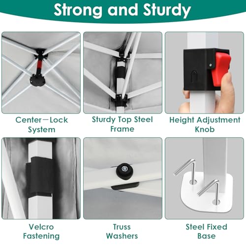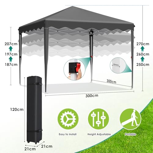 ⛱️【Höhenverstellung Design】 Faltpavillion Jedes Bein verfügt über Auf- und Ab Schnellverschlussknöpfe,die sich sehr einfach zusammenklappen und in der Höhe verstellen lassen ( 250 cm, 260 cm und 270cm). Sie können die passende Höhe entsprechend Ihren Bedürfnissen votieren. Hinweis: Bitte seien Sie beim Ausrichtung der Höhe aufmerksam,um ein Einklemmen Ihrer Finger Umschiffen.