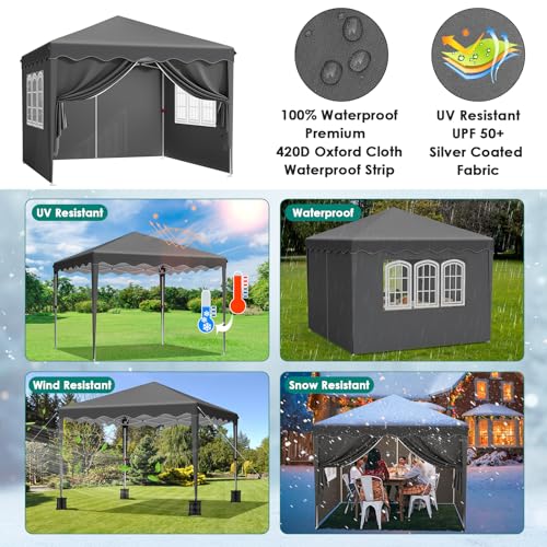 ⛱️【420D Hochwertiges Material】Die Überdachungsplane besteht aus hochdichtem 420D Gewebe,Der verbesserte Stoff ist mit einer PU-Beschichtung behandelt und Innenseite ist versilbert mit UV-Abschirmung 50+, Die versiegelte Nahttechnologie ist effektiv wasserdicht und bietet Ihnen kühlen Abschirmung bei Sonne oder Regen.Hinweis:extremen Wetterbedingungen (wie Starker Wind,starker Regen,Schneesturm ) ,wird empfohlen, Partyzelt zusammenzufalten und Innenbereich aufzubewahren, Umschiffen Sie,dass Schnee oder starker Wind weht oder den Rahmen zusammenbricht.