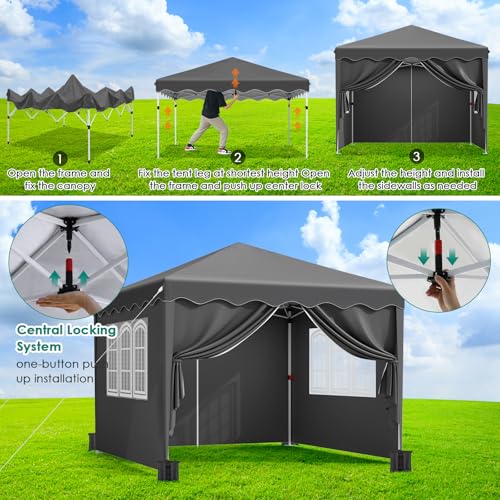 ⛱️【Mittelverriegelung Pop-up-Design】Mit dem praktischen Pop-Up-Design und der Zentralverriegelung können Sie den Metallrahmen einfach sichern und gehen lassen. Dann müssen Sie zugegeben noch die obere Absicherung anbringen und die ideale Höhe einstellen, um ohne zusätzliches Werkzeug in kurzer Zeit eine komplette Pavillon für den Außenbereich zu erhalten.