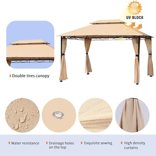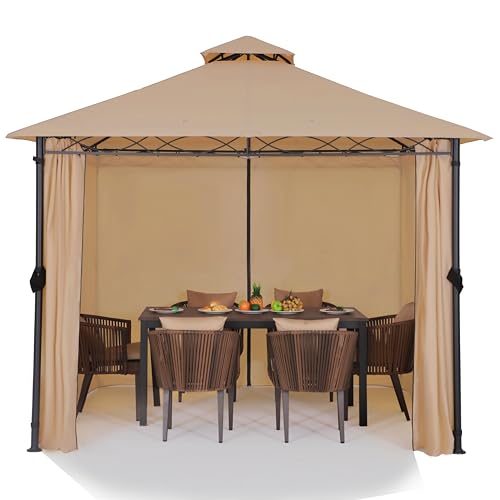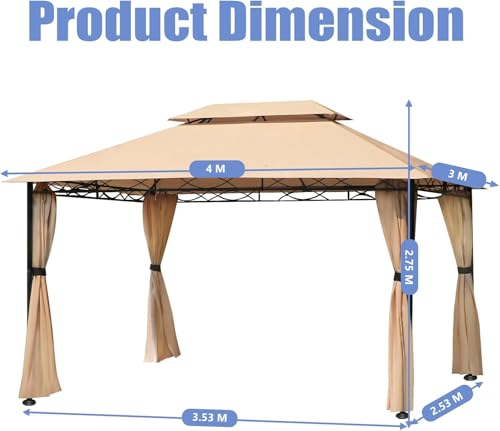 Pavillon 3X4M Wasserdicht Stabil Winterfest Robuster Gartenpavillon mit Vorhänge Atmungsaktiver Pavillion für Camping Garten und Terrasse (Khaki)