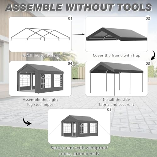💨 【Robust und wetterfest – bekannt als bei Wind & Regen leistungsfähig】Der Rahmen aus verzinktem Stahl mit 37 mm Durchmesser sorgt für hohe Stabilität und Korrosionsschutz. Tiefgreifende Bodenverankerung und Spannseile bieten sicheren Halt – selbst bei starkem Wind. Ideal für den ganzjährigen Einsatz im Freien.