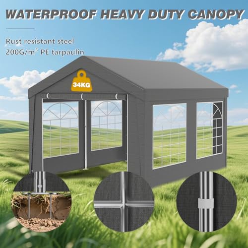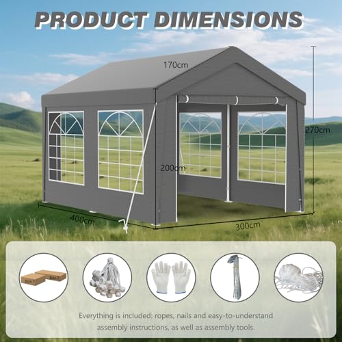 Mit den verfügbaren Größen von 3x4m, 3x6m, 4x6m und 4x8m ist der Pavillon äußerst anpassbar und eignet sich hervorragend für Gartenpartys, Hochzeiten, Camping-Ausflüge oder Grillabende. Wirken Sie sich mit diesem flexiblen Design ganz einfach temporäre Unterkünfte, Schutzräume oder Stauraum.