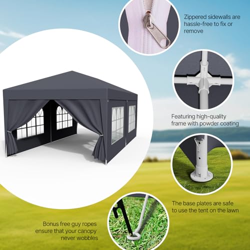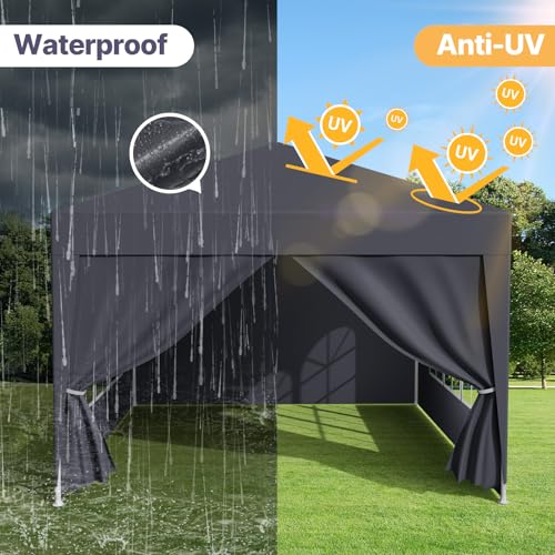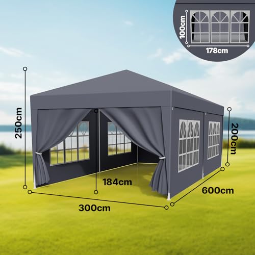 Pavillon 3x6m Wasserdicht, Garten Pavillon Stabil Stecksystem-Metallgestänge, Festzelt, Erdhaken-Seil, Party Zelt PE-Plane, Faltpavillon mit Seitenwänden für Party-Camping-Markt, UV-Schutz, Anthrazit