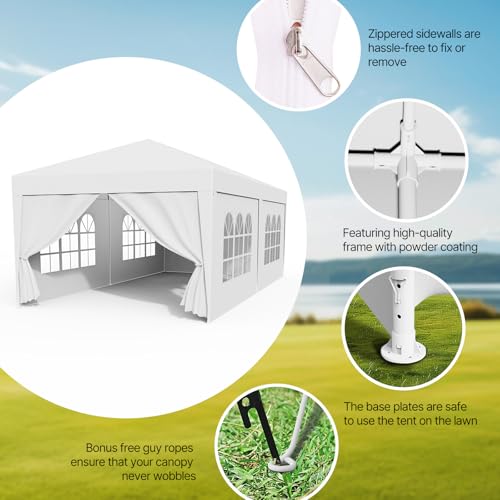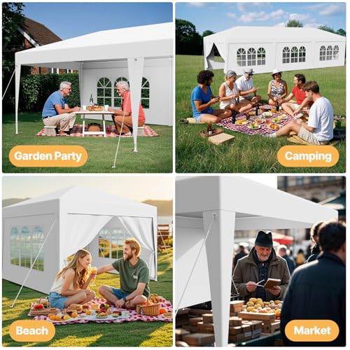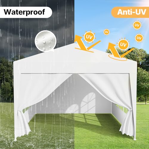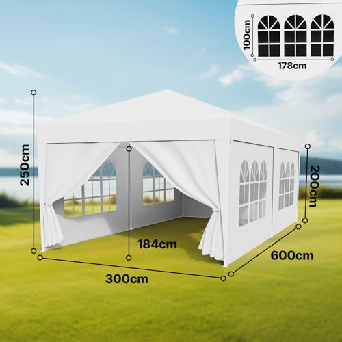 Pavillon 3x6m Wasserdicht, Garten Pavillon Stabil Stecksystem-Metallgestänge, Festzelt mit Erdhaken-Seil, PartyZelt PE, Faltpavillon mit Seitenwänden für Garten Party-Camping-Markt,UV-Schutz, Weiß