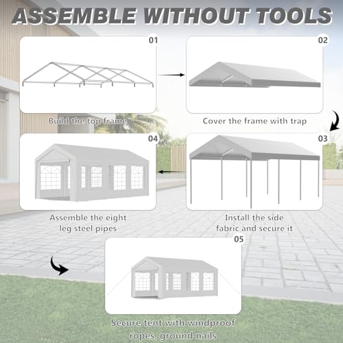 💨 【Robust und wetterfest – auch bei Wind & Regen stabil】Der Rahmen aus verzinktem Stahl mit 37 mm Durchmesser sorgt für hohe Stabilität und Korrosionsschutz. Tiefgreifende Bodenverankerung und Spannseile bieten sicheren Halt – selbst bei starkem Wind. Ideal für den ganzjährigen Einsatz im Freien.