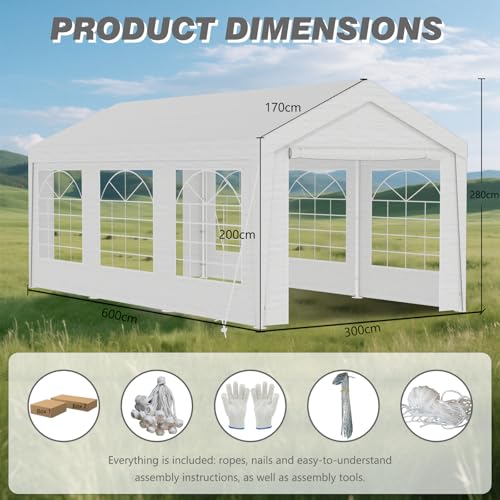 Pavillon 3x6m Winterfest – Wasserdichtes & stabiles Gartenzelt mit Fenstern, schweres Partyzelt für Hochzeit, Feier, Hausparty – Winddichtes Festzelt für den Winter, Weiß
