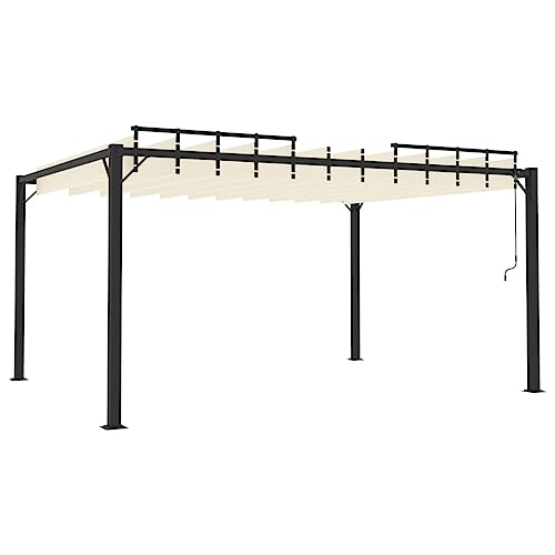 Pavillon mit Lamellendach, 3 x 4 m, cremefarbener Stoff und Aluminium. Dieser moderne und elegante Pavillon sieht toll aus in Ihrem Garten, Terrasse, Pool und so weiter. Sie und Ihre Familie können damit jede gesellige Zusammenkunft genießen. Dieser Pavillon besteht aus PA-beschichtetem Gewebe, wasser- und schmutzabweisend. Der starke Aluminiumrahmen macht den Pavillon stabil und sehr langlebig. Dieser Pavillon ist mit einem verstellbaren Lamellendach ausgestattet. Sie können die Jalousien einfach drehen und in die ideale Position einstellen, indem Sie einfach die Handstange schütteln. Öffnen Sie sie, wenn Sie die Sonne genießen möchten, und schließen Sie sie wieder, um Schatten zu schützen oder Sie vor ein bisschen Regen zu schützen. Dieser Pavillon ist eine perfekte Wahl für Ihre Outdoor-Aktivitäten. Hinweis: Dieses Produkt sollte niemals bei schlechtem Wetter wie starkem Wind, starkem Regen, Schnee, Sturm usw. verwendet werden. Rasen und Garten, Outdoor-Wohnen, Außenstrukturen, Vordächer und Pavillons