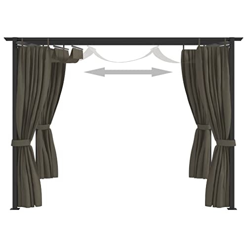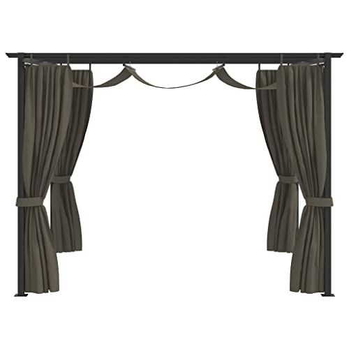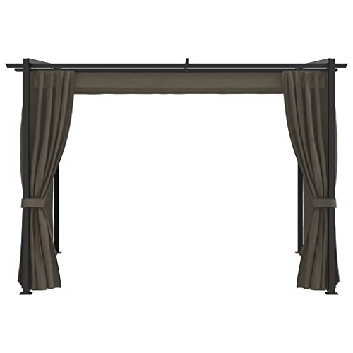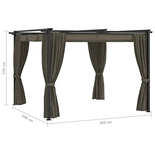 Pavillon mit Vorhängen, 3 x 3 m, Taupe, Stahl + Material: Stahl, Stoff (100 % Polyester)