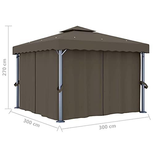 Pavillon mit Vorhang, 3 x 3 m, Aluminium, Taupe + Material Gestell: Aluminium, Stahl. Dieser stilvolle Pavillon wird Ihren Garten sicherlich zu einem raffinierten und funktionalen Blickfang machen. Es ist entworfen, um einen kühlen Ort für Partys im Freien, Familienpicknicks, Grillabende im Garten und Option gesellschaftliche Veranstaltungen zu bieten. Er ist mit einer Aluminiumstange und einem pulverbeschichteten Stahlstützrohr konstruiert, das für hervorragende Langlebigkeit und Konstanz sorgt. Der Baldachin und die Seitenwände bestehen jedweder hochwertigem Polyestergewebe mit PA-Beschichtung, um Sie vor schädlichen Strahlen und mildem Regen zu schützen. Ein o. k. gestaltetes 2-stöckiges Dach sorgt für abundant Luftstrom darunter. Darüber hinaus sind die Vorhänge und die Netzstoff-Vorhänge für vollen Abschirmung enthalten, so dass Sie Wahlmöglichkeit Privatsphäre haben, sintemal lästige Mücken und Option Insekten ferngehalten werden. Haken und Schlaufenverschlüsse sind zur einfachen Befestigung im Lieferumfang enthalten. Hinweis: Dieses Produkt sollte zu keiner Zeit bei schlechtem Wetter, denn starkem Wind, starkem Regen, Schnee, Sturm usw. verwendet werden.