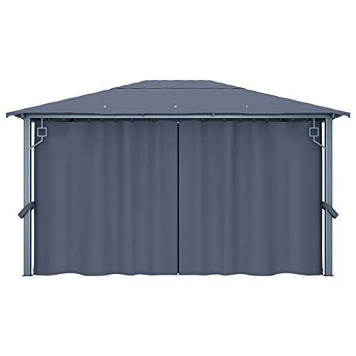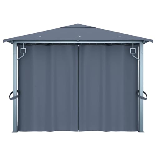 Pavillon mit Vorhang 400 x 300 cm Anthrazit Leichtmetall