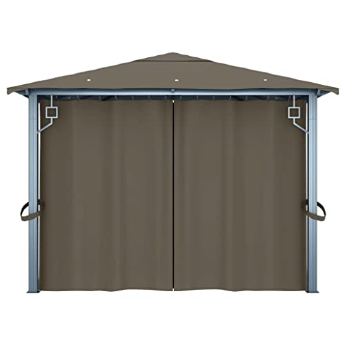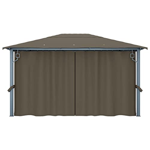 Pavillon mit Vorhang 400×300 cm Taupe Aluminium + Material Gestell: Aluminium, Stahl