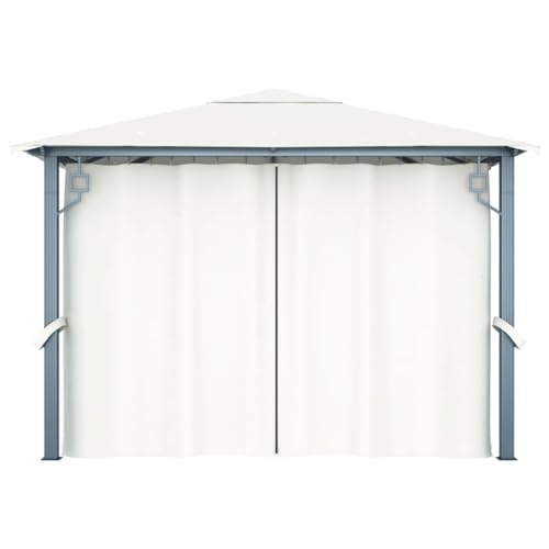 Pavillon mit Vorhang & LED-Lichterkette 3x3m Creme Aluminium