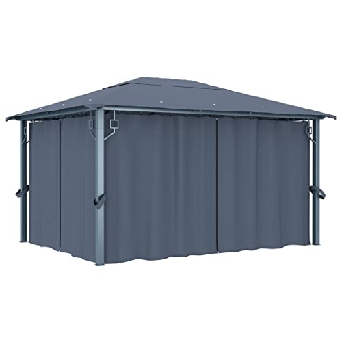 Pavillon mit Vorhang & LED Lichterkette 4x3m Anthrazit Aluminium Haus & Garten