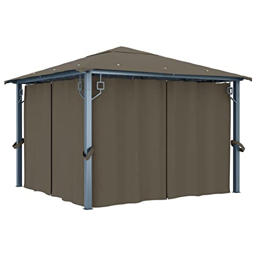 Pavillon mit Vorhang und LED-Lichterkette, 3 x 3 m, taupe, Aluminium, für Rasen und Garten