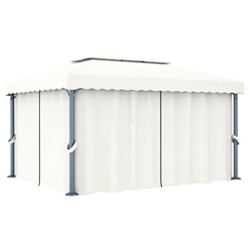 Pavillon mit Vorhang und LED-Lichterkette, 4 x 3 m, cremeweiß, Rasen und Garten