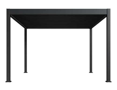 Pavillon Pergola 3x4m Terassenüberdachung freistehend mit Lamellendach LED verstellbar Gartenpavillon Hardtop wasserdicht stabil Winterfest Voll-Aluminium Weide Deluxe mit Fernbedienung Anthrazit