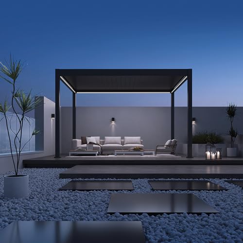✔️ PERFEKTE WOHLFÜHLOASE MIT FLEXIBLER NUTZUNG – Elektrisch verstellbares Lamellendach mit stufenloser Neigung bis zu 135°, bietet optimalen Schutz vor UV-Strahlen, Regen und Hitze, sowie angenehme Belüftung und Schatten.
