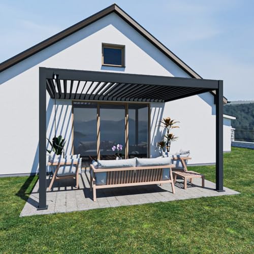 Pavillon Pergola 3x4m Terassenüberdachung freistehend mit Lamellendach verstellbar Gartenpavillon Hardtop wasserdicht stabil Winterfest Voll-Aluminium Grillpavillon Weide Premium Wall Anthrazit